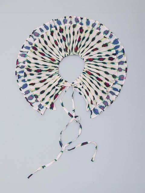 Wearing one of Paris-based designer Julia Heuer‘s hand-pleated dresses feels like walking around in your own bouncy castle — a delight! The pleating technique she uses, called arashi shibori, creates rounded, springy volumes with oomph. Julia trained as a textile designer, but always wants her prints to look a little “off.” To that end, she makes all her patterns by hand — whether through painting, collage, photography — and then messes with them digitally, until they edge into sublime chaos. She’s recently started making tie-on collars, scarves and bags, which are a great way for the more pattern-shy out there to play around with her work.